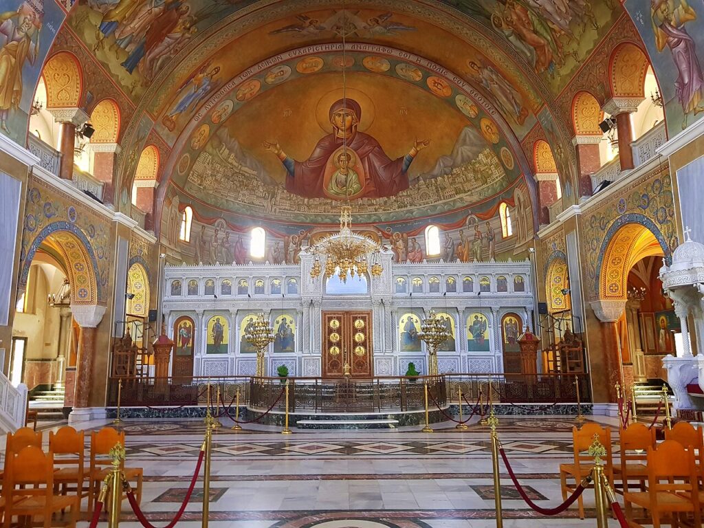 The Cathedral of Saint Andrew in Patras rises triumphantly over the city, a beacon of Orthodox faith and one of the greatest modern ecclesiastical landmarks in the Balkans. Completed in 1974 after decades of interrupted construction, this neo-Byzantine masterpiece surprises visitors with its immense central dome, adorned by a gold-plated cross, and surrounded by twelve smaller domes that honor the apostles. Inside, vibrant Byzantine mosaics, towering marble pillars, and gilded icons envelop worshipers in an atmosphere both luminous and reverent. The cathedral can hold over 7,000 people, and it houses sacred relics, including the supposed head of the Apostle Andrew, making it a pilgrimage site as well as a powerful symbol of Patras’ enduring spiritual and cultural vitality.